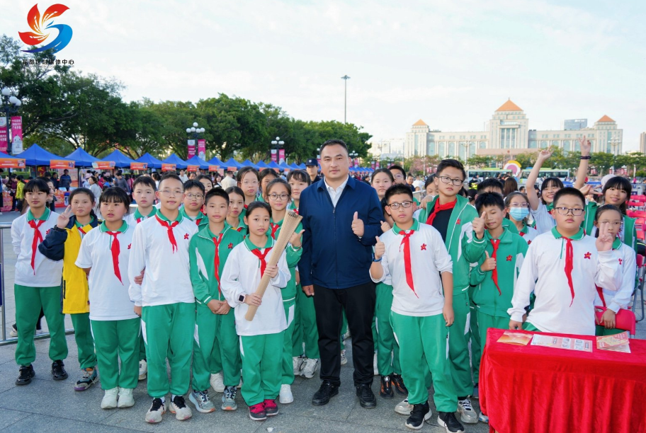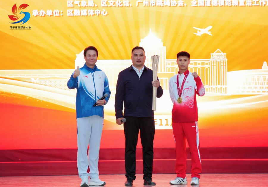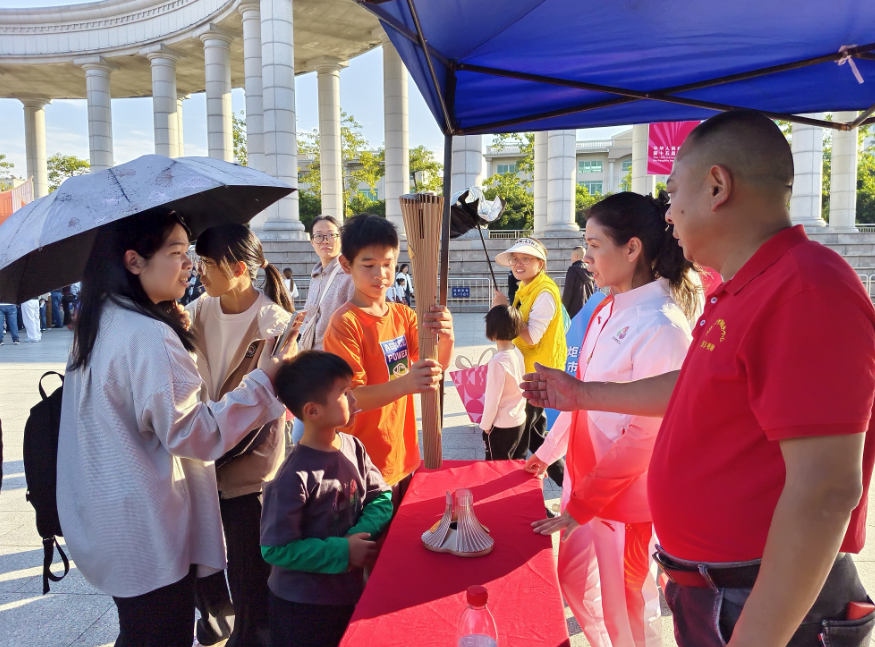 “看!这就是十五运的火炬!”人群中传来孩子们的欢呼。传递十五运圣火的全国道德模范赖宣治、执裁十五运赛场的花都区体校副校长江剑芬、勇夺十五运男子拳击冠军的朱健豪三位花都英才亲临现场,瞬间点燃现场气氛。他们向广大的市民群众展示十五运火炬,分享赛场内外的拼搏感悟与文明心声。