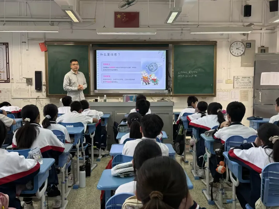 ▲流感防控科普课堂走进广州市第七中学东山学校(授课者:东山街社区卫生服务中心宋美莹,曾获2023年越秀区预防接种科普演讲比赛一等奖)