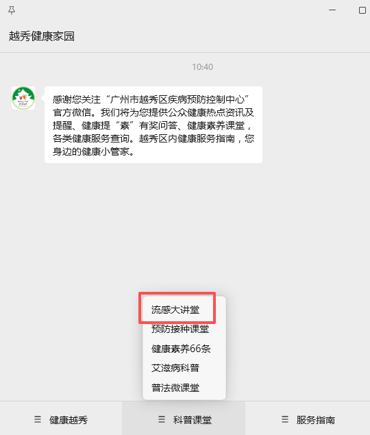 另一方面,将“科普官”精心打造成为“流感科普宣传大使”,通过与区委宣传部紧密合作,录制生动有趣的流感科普课程,在“越秀发布”“湾区生活指南”等官方媒体发布,拓宽传播渠道和覆盖面。