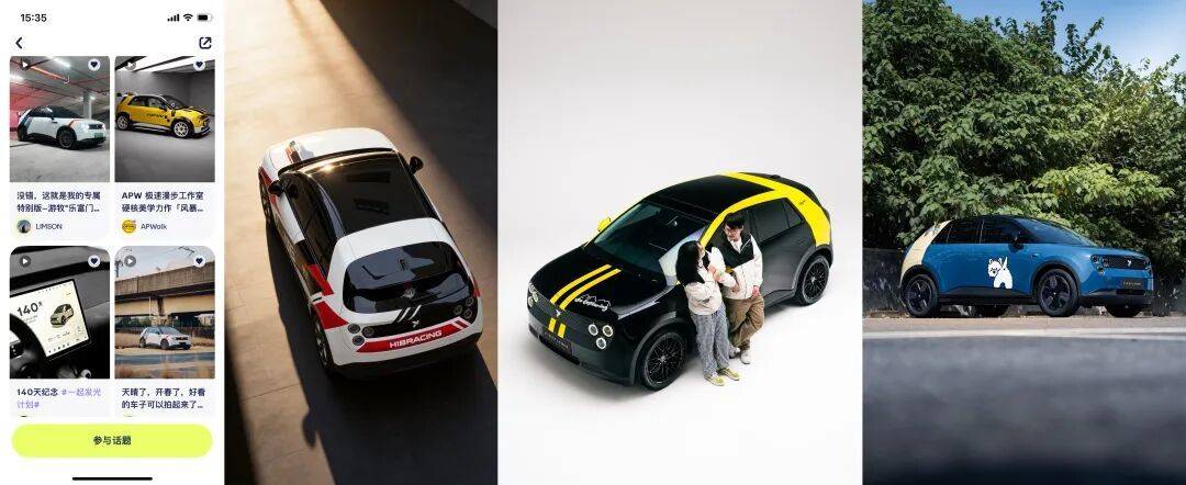 安全之外,情绪价值是另一张王牌。“project glow一起发光计划”鼓励用户鼓励用户尽情探索小车的无限改装可能。至今,该活动已举办五期,收到4万多份改装创意,阅读互动近1亿次,共送出5台车的拥有权。这也进一步助推当下用户开启自己的改装之旅,数据显示,超过40%的萤火虫用户提车后会进行改装,有人改成移动咖啡车,有人改成宠物专车。
